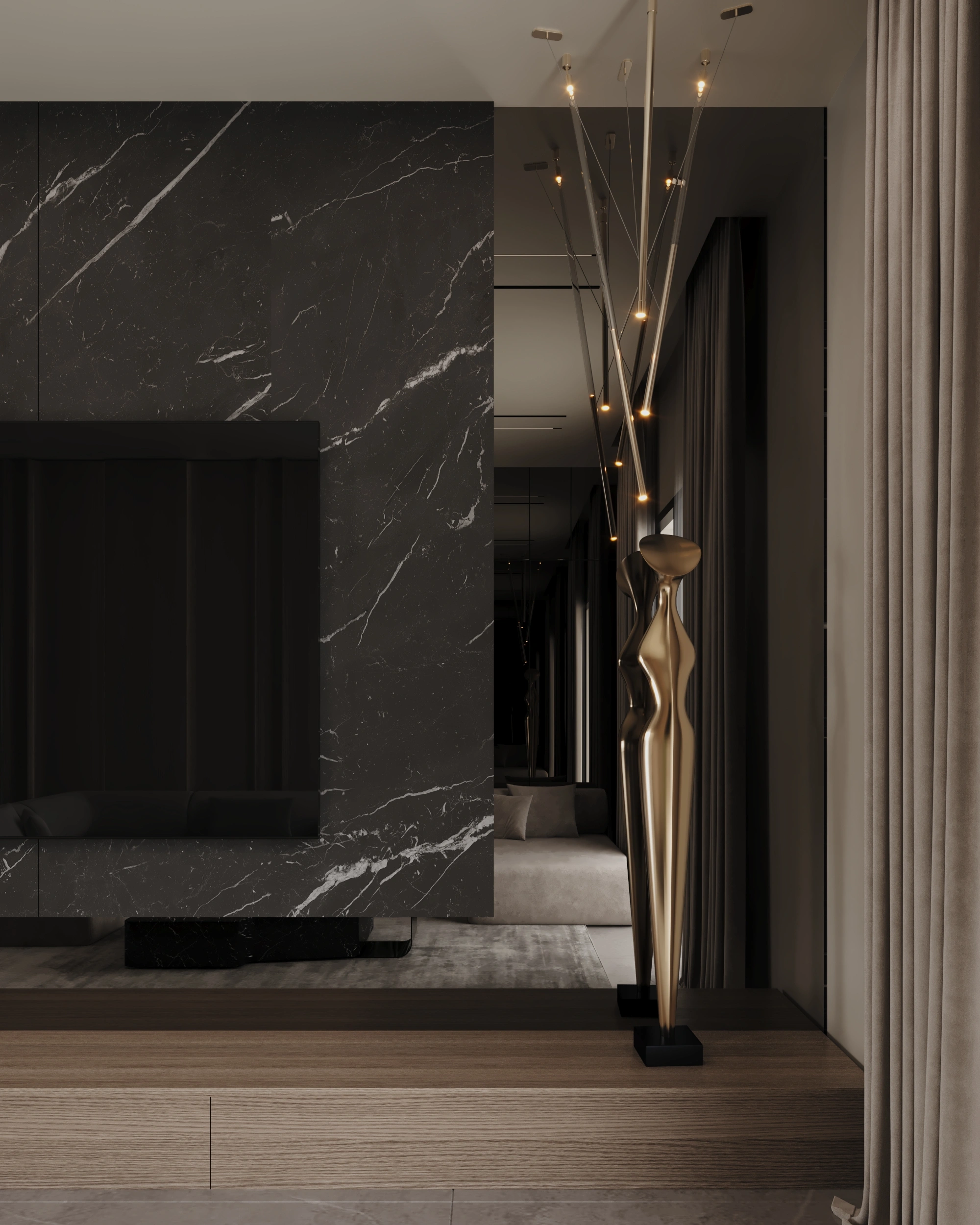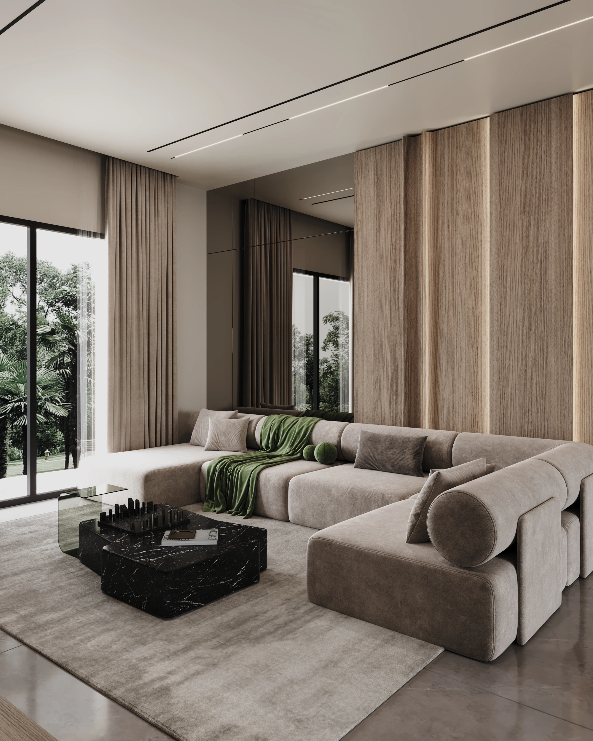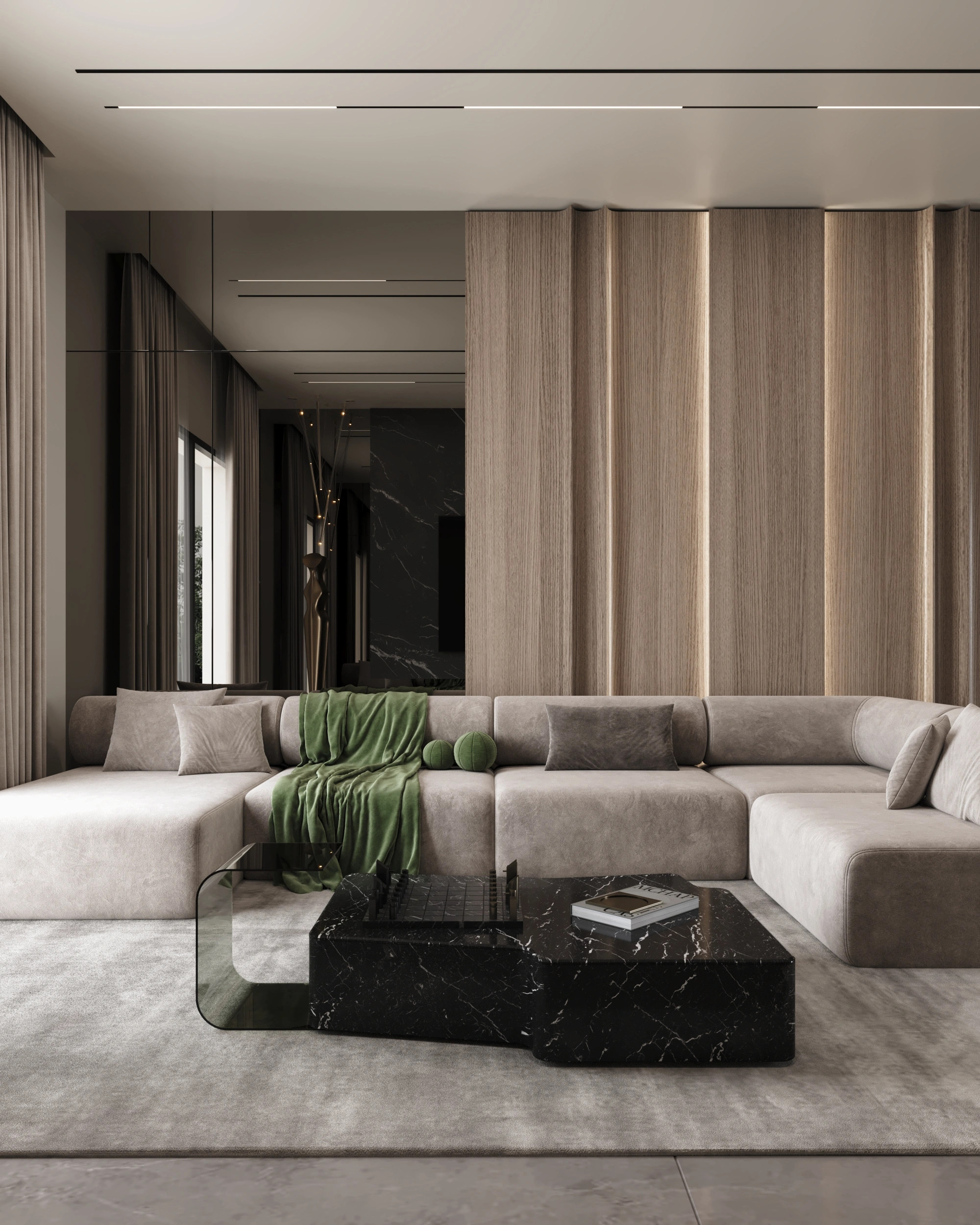 Neutral color palettes were used as a base, enhanced with warm textures and carefully selected materials to create a welcoming and harmonious atmosphere. Custom furniture pieces, smart storage solutions, and thoughtful lighting design were integrated to maximize space efficiency and enhance the overall visual appeal.